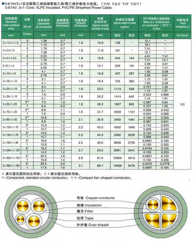 额定电压0.6/1kV交联聚乙烯绝缘电力电缆