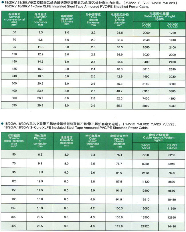 额定电压3.6/6kV-26/35kV交联聚乙烯绝缘电力电缆