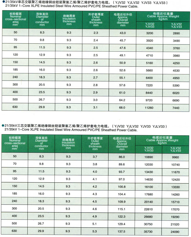 额定电压3.6/6kV-26/35kV交联聚乙烯绝缘电力电缆