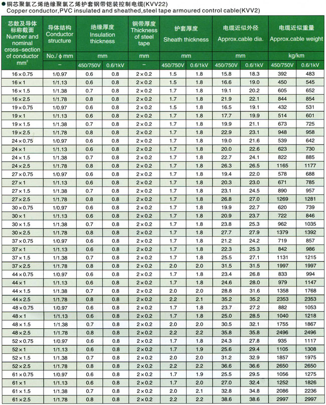 聚氯乙烯绝缘控制电缆