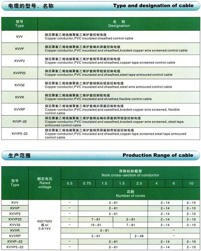 聚氯乙烯绝缘控制电缆