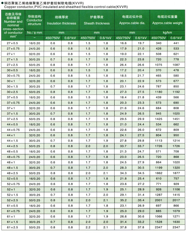 聚氯乙烯绝缘控制电缆