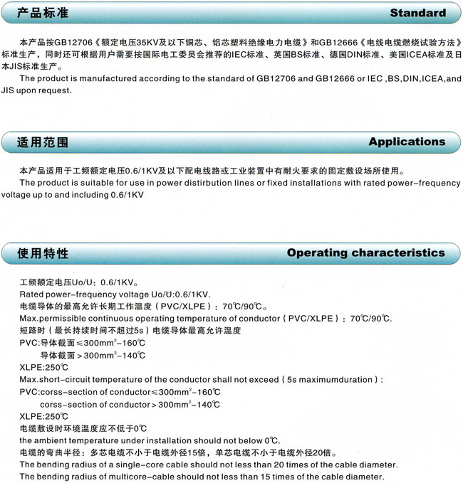 0.6/1kV聚氯乙烯交联聚乙烯绝缘耐火电力电缆
