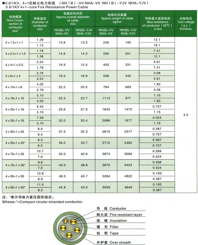 0.6/1kV聚氯乙烯交联聚乙烯绝缘耐火电力电缆