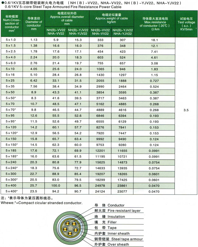 0.6/1kV聚氯乙烯交联聚乙烯绝缘耐火电力电缆