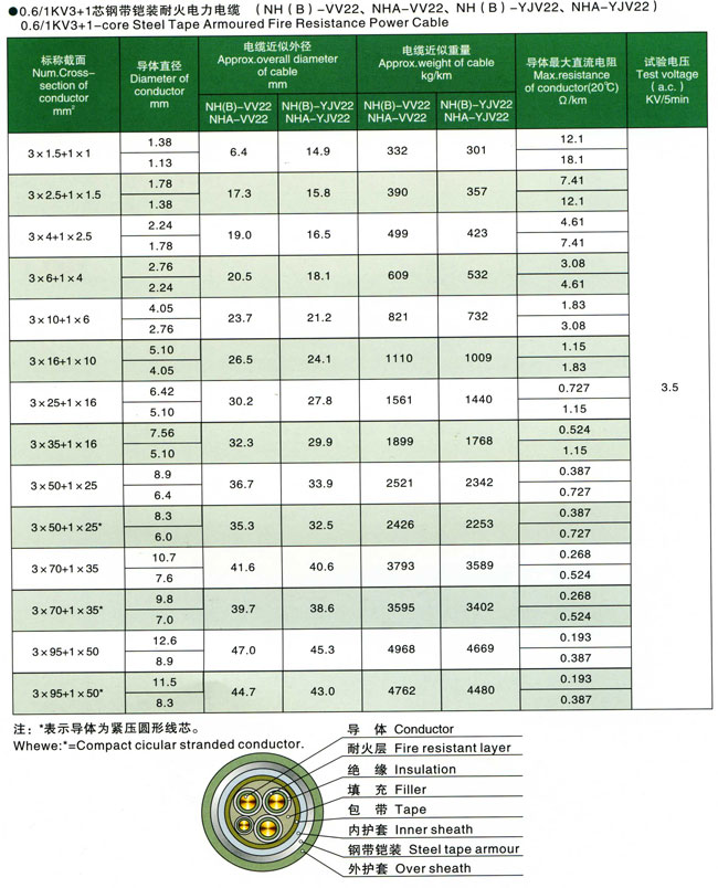 0.6/1kV聚氯乙烯交联聚乙烯绝缘耐火电力电缆