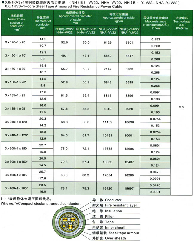 0.6/1kV聚氯乙烯交联聚乙烯绝缘耐火电力电缆