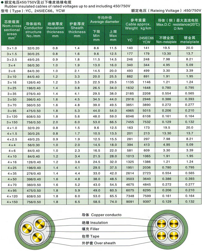 额压电压450/750V及以下橡皮绝缘电缆(电线)