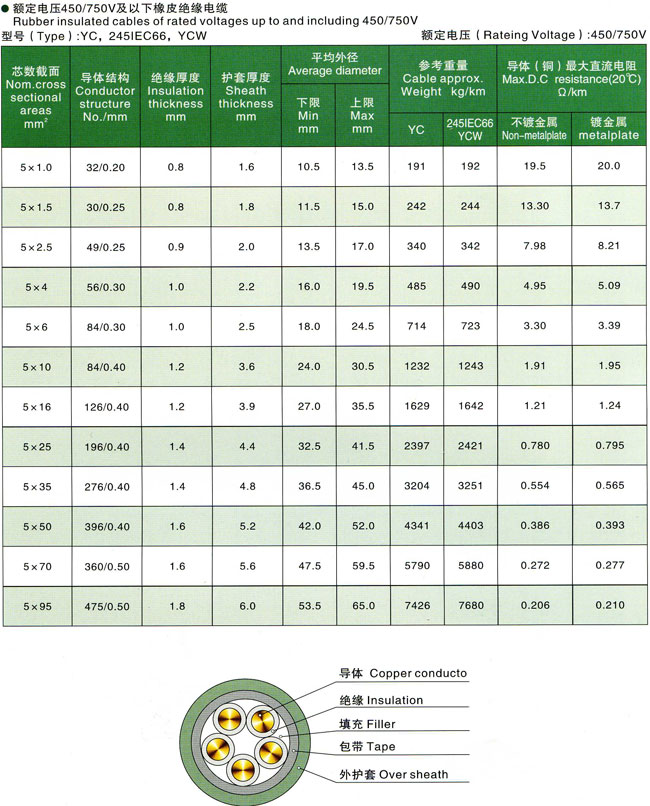 额压电压450/750V及以下橡皮绝缘电缆(电线)