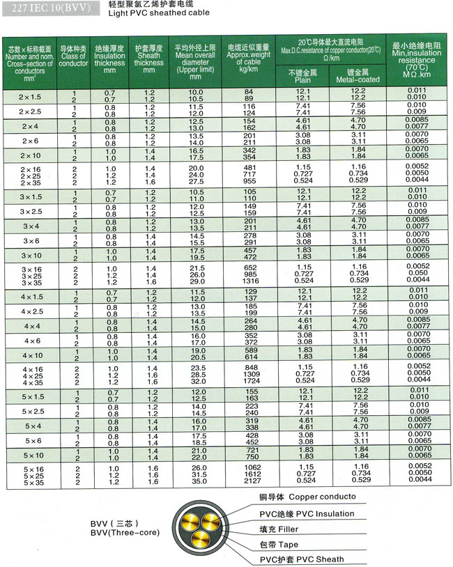 0.6/1kV聚氯乙烯绝缘电力电缆