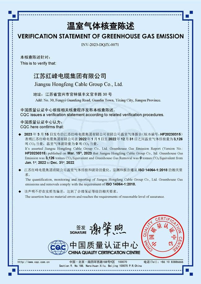 江苏红峰电缆集团有限公司2023EN证书