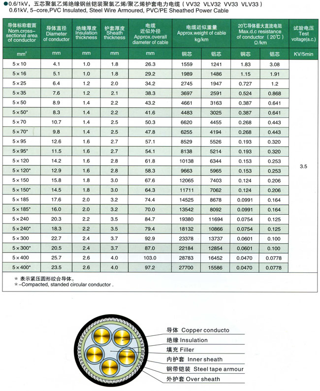 0.6/1kV聚氯乙烯绝缘电力电缆