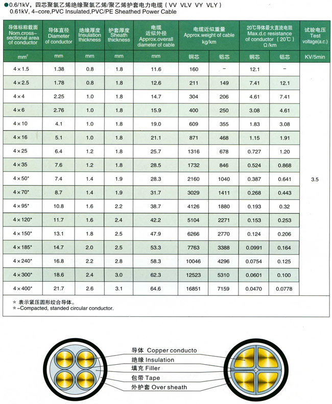 额定电压0.6/1kV交联聚乙烯绝缘