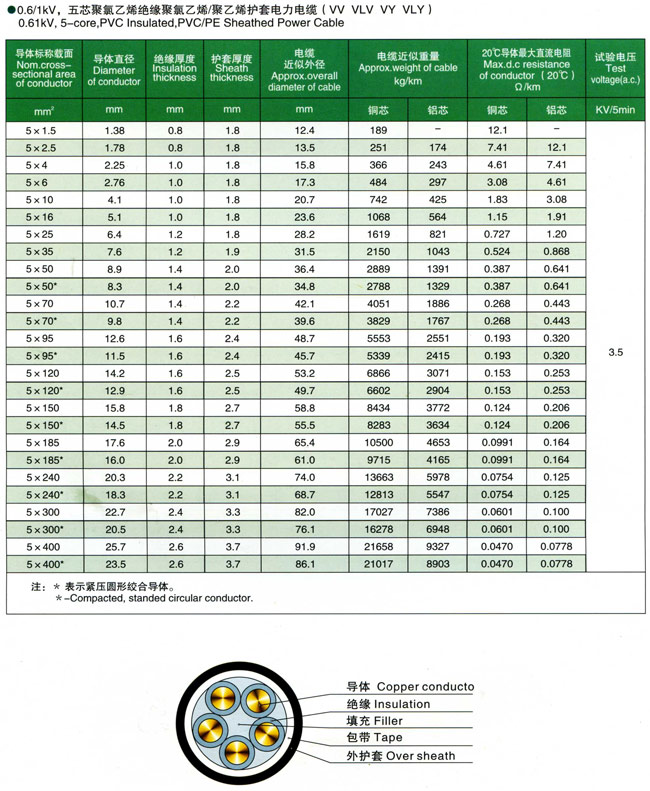 0.6/1kV聚氯乙烯绝缘电力电缆