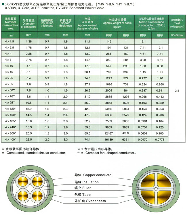 额定电压0.6/1kV交联聚乙烯绝缘