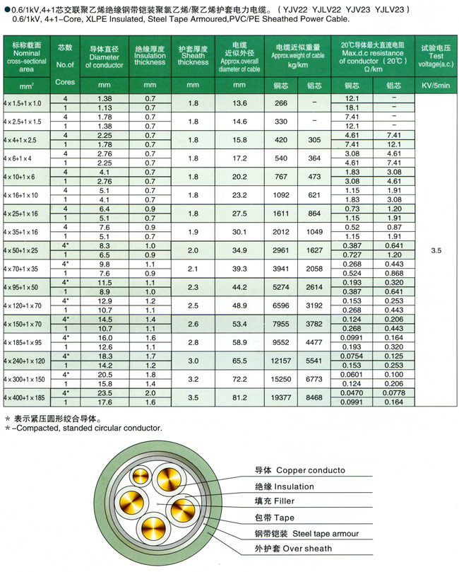 额定电压0.6/1kV交联聚乙烯绝缘