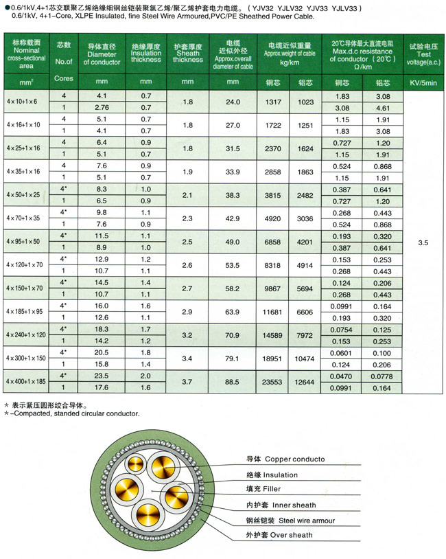 额定电压0.6/1kV交联聚乙烯绝缘