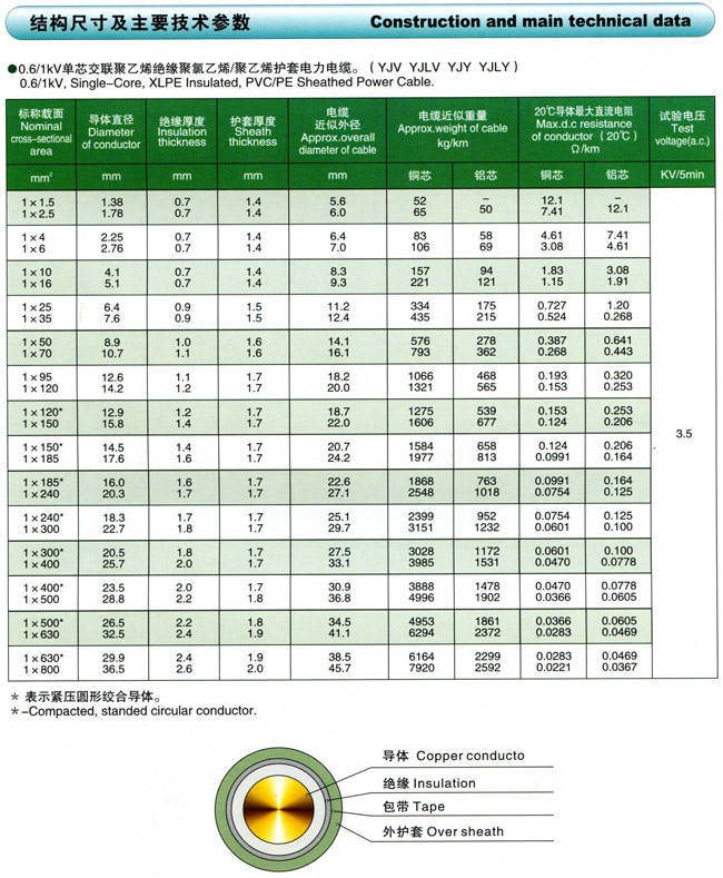 额定电压0.6/1kV交联聚乙烯绝缘