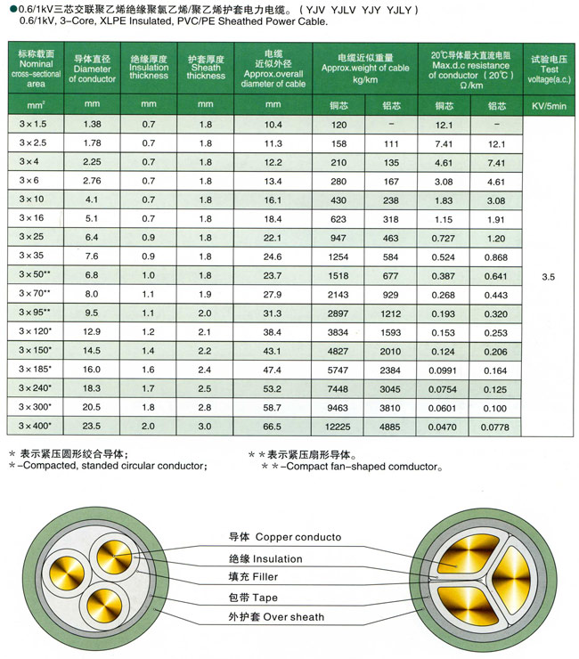 额定电压0.6/1kV交联聚乙烯绝缘电力电缆