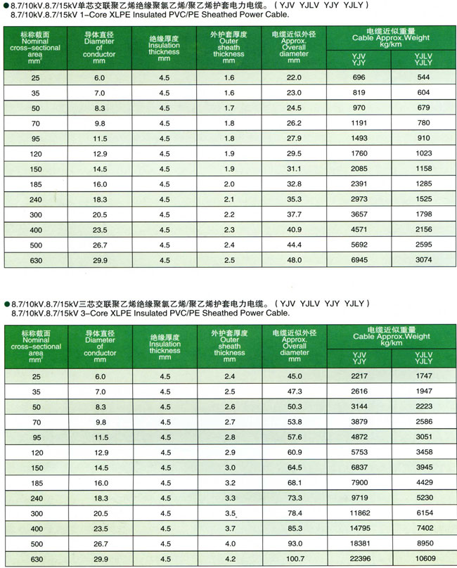 额定电压3.6/6kV-26/35kV交联聚乙烯绝缘电力电缆