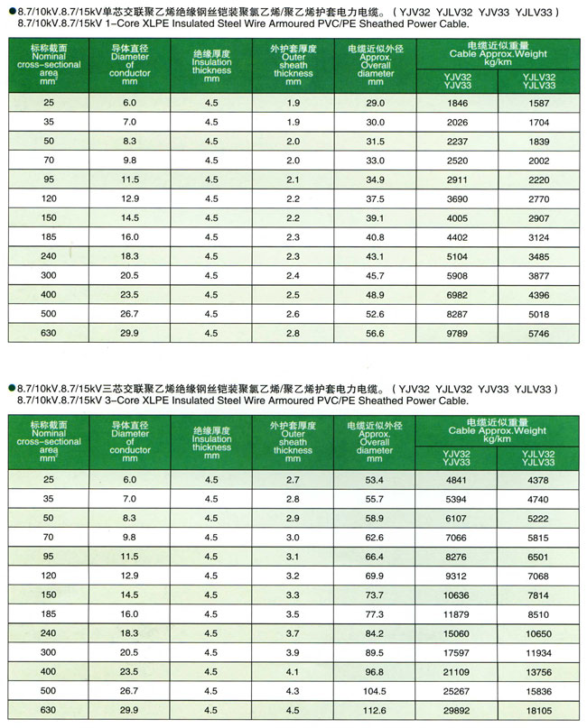 额定电压3.6/6kV-26/35kV交联聚乙烯绝缘电力电缆