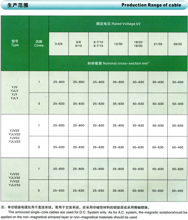额定电压3.6/6kV-26/35kV交联聚乙烯绝缘电力电缆