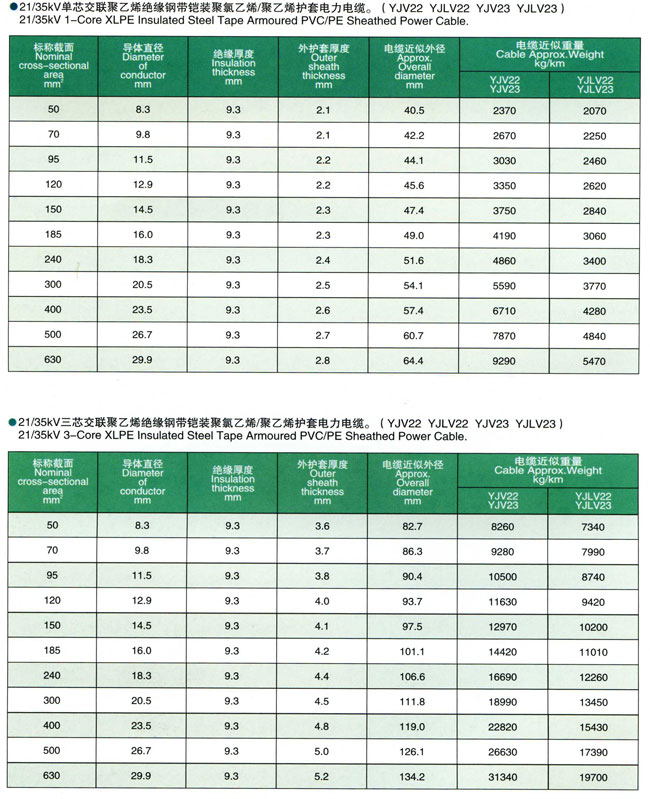 额定电压3.6/6kV-26/35kV交联聚乙烯绝缘电力电缆