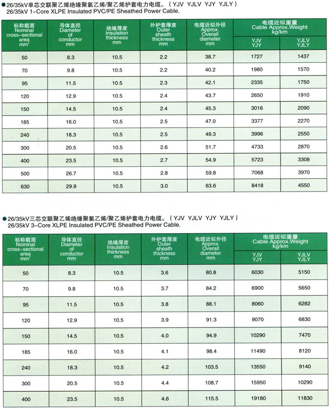 额定电压3.6/6kV-26/35kV交联聚乙烯绝缘电力电缆