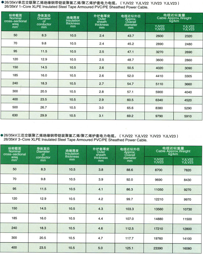 额定电压3.6/6kV-26/35kV交联聚乙烯绝缘电力电缆