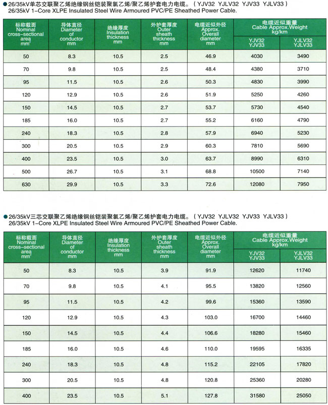 额定电压3.6/6kV-26/35kV交联聚乙烯绝缘电力电缆