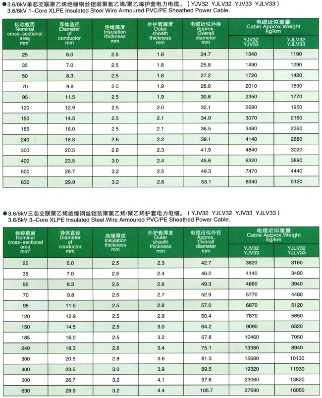 额定电压3.6/6kV-26/35kV交联聚乙烯绝缘电力电缆