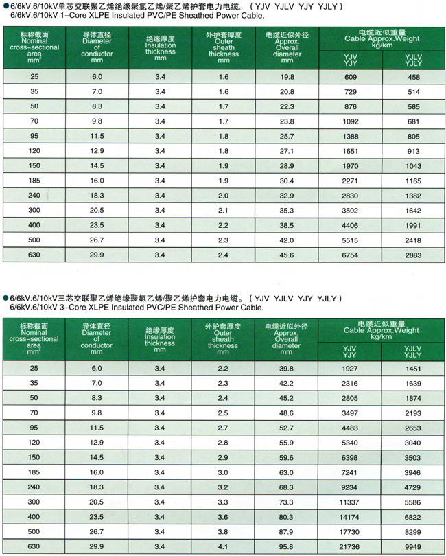 额定电压3.6/6kV-26/35kV交联聚乙烯绝缘电力电缆