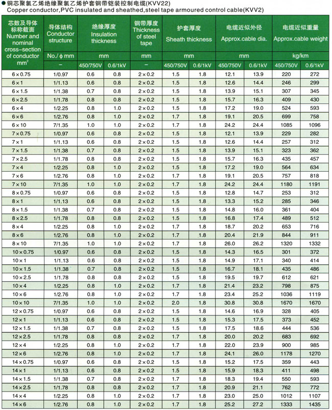聚氯乙烯绝缘控制电缆