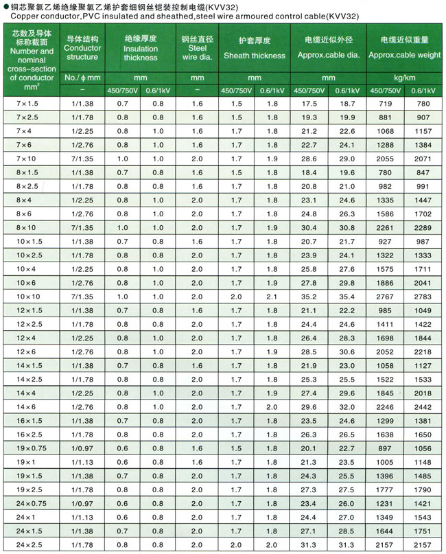 聚氯乙烯绝缘控制电缆