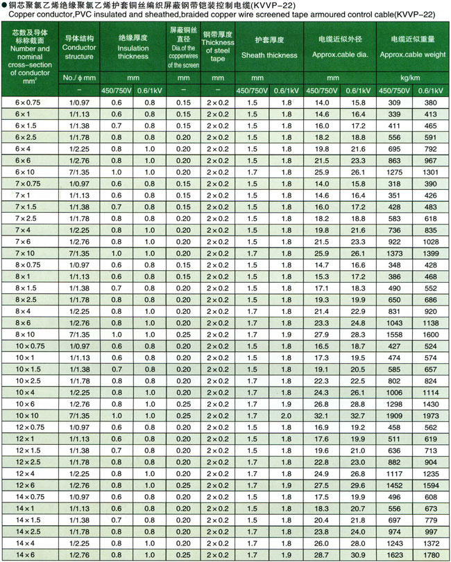 聚氯乙烯绝缘控制电缆