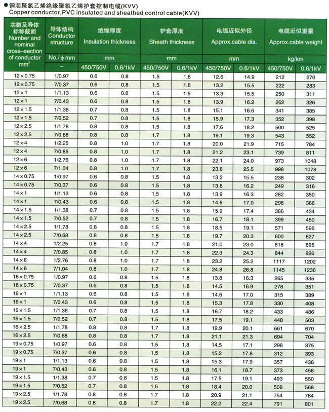 聚氯乙烯绝缘控制电缆