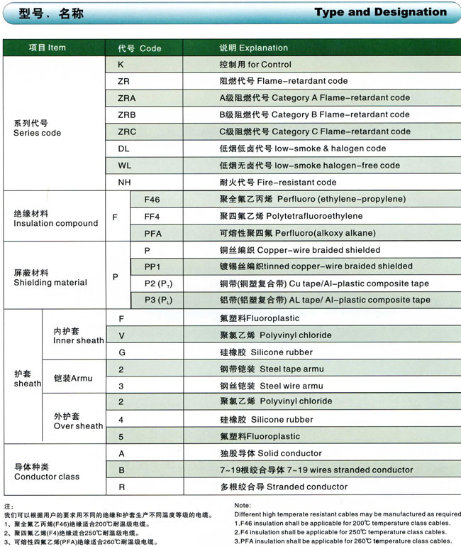 氟塑料绝缘耐高温控制电缆