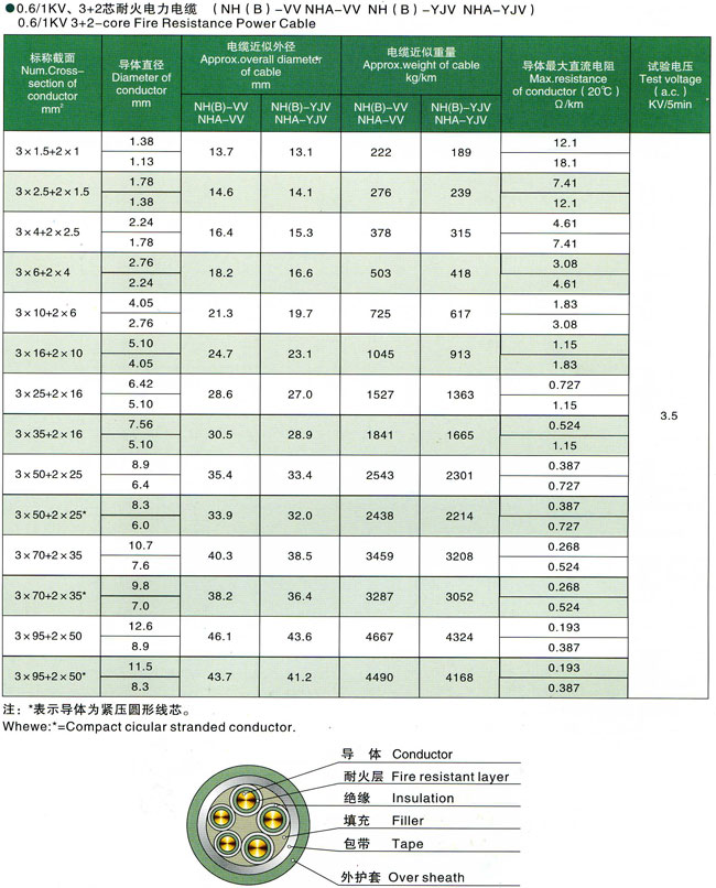 0.6/1kV聚氯乙烯交联聚乙烯绝缘耐火电力电缆