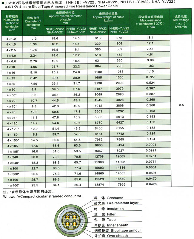 0.6/1kV聚氯乙烯交联聚乙烯绝缘耐火电力电缆