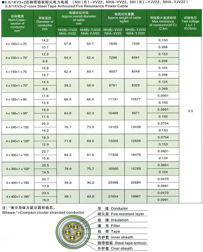 0.6/1kV聚氯乙烯交联聚乙烯绝缘耐火电力电缆