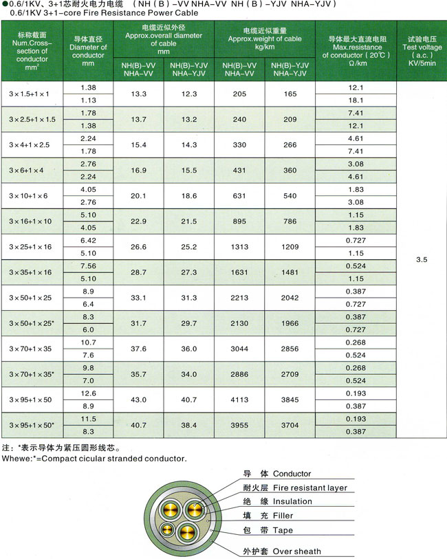 0.6/1kV聚氯乙烯交联聚乙烯绝缘耐火电力电缆