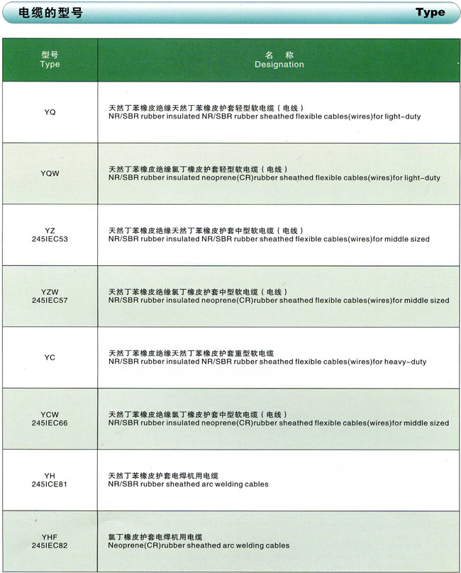 额压电压450/750V及以下橡皮绝缘电缆(电线)